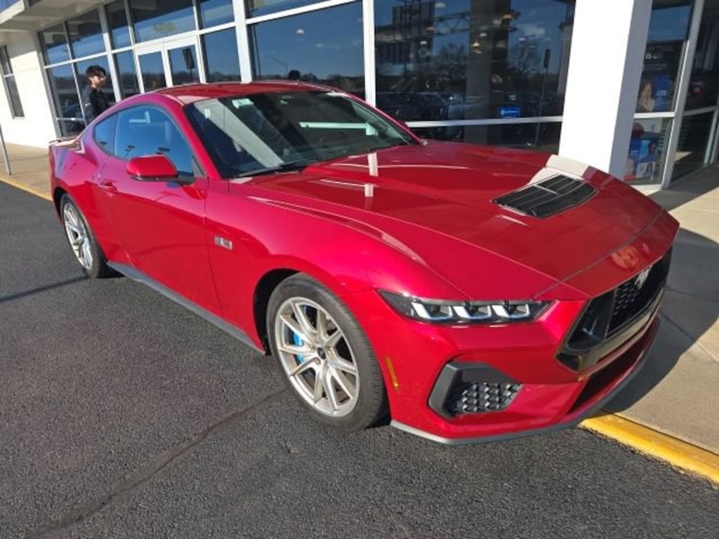 CARFAX One-Owner. Clean CARFAX. Rapid Red Metallic Tinted Clearcoat 2024 Ford Mustang GT Premium ***ONE OWNER***, ***LOCAL TRADE***, ***DEALER MAINTAINED***, ***EXCELLENT CONDITION***, ***LOADED***, ***6 SPEED MANUAL TRANSMISSION***, ***ALLOY WHEELS***, ***BACK UP CAMERA***, ***FORWARD COLLISION ALERT***, ***HEATED SEATS***, ***HEATED STEERING WHEEL***, ***LEATHER***, ***SIRIUS XM RADIO***, ***NAVIGATION***, Active Anti-Theft System, Active Valve Performance Exhaust, B&O Sound System by Bang & Olufsen, Connected Built-In Navigation, Equipment Group 401A High Package, Ford Co-Pilot360 Assist+, Illuminated Door-Sill Scuff Plates, Integrated Turn Signals, Leather-Trimmed Bucket Seats w/Color Accents, Locking Center Console, Memory Driver Seat & Mirrors, Pre-Collision Assist w/Automatic Emergency Braking, Security Package, Wheel Locking Kit, 19 Branded Brake System w/Performance Linings, 3.55 Limited Slip Rear Axle, 4-Wheel Disc Brakes, ABS brakes, Air Conditioning, Alloy wheels, AM/FM Stereo, Auto High-beam Headlights, Automatic temperature control, Brake assist, Bumpers: body-color, Compass, Delay-off headlights, Driver door bin, Driver vanity mirror, Dual front impact airbags, Dual front side impact airbags, Electronic Stability Control, Emergency communication system: 911 Assist, Exterior Parking Camera Rear, Four wheel independent suspension, Front anti-roll bar, Front Bucket Seats, Front Center Armrest, Front reading lights, Fully automatic headlights, Grabber Blue Brake Calipers w/White Logo, Illuminated entry, Knee airbag, Leather Shift Knob, Leather steering wheel, Low tire pressure warning, Occupant sensing airbag, Outside temperature display, Overhead airbag, Overhead console, Panic alarm, Passenger door bin, Passenger vanity mirror, Power door mirrors, Power steering, Power windows, Radio data system, Rain sensing wipers, Rear anti-roll bar, Rear Parking Sensors, Rear window defroster, Remote keyless entry, Speed control, Speed-sensing steering, Speed-Sensitive Wipers, Split folding rear seat, Spoiler, Sport steering wheel, Steering wheel mounted audio controls, SYNC 4.0 QNX, Tachometer, Telescoping steering wheel, Tilt steering wheel, Traction control, Trip computer, Variably intermittent wipers, Voltmeter, Wheels: 19 x 8.5 Shadow Silver-Painted Aluminum, Active Anti-Theft System, Active Valve Performance Exhaust, B&O Sound System by Bang & Olufsen, Connected Built-In Navigation, Equipment Group 401A High Package, Ford Co-Pilot360 Assist+, Illuminated Door-Sill Scuff Plates, Integrated Turn Signals, Leather-Trimmed Bucket Seats w/Color Accents, Locking Center Console, Memory Driver Seat & Mirrors, Pre-Collision Assist w/Automatic Emergency Braking, Security Package, Wheel Locking Kit.