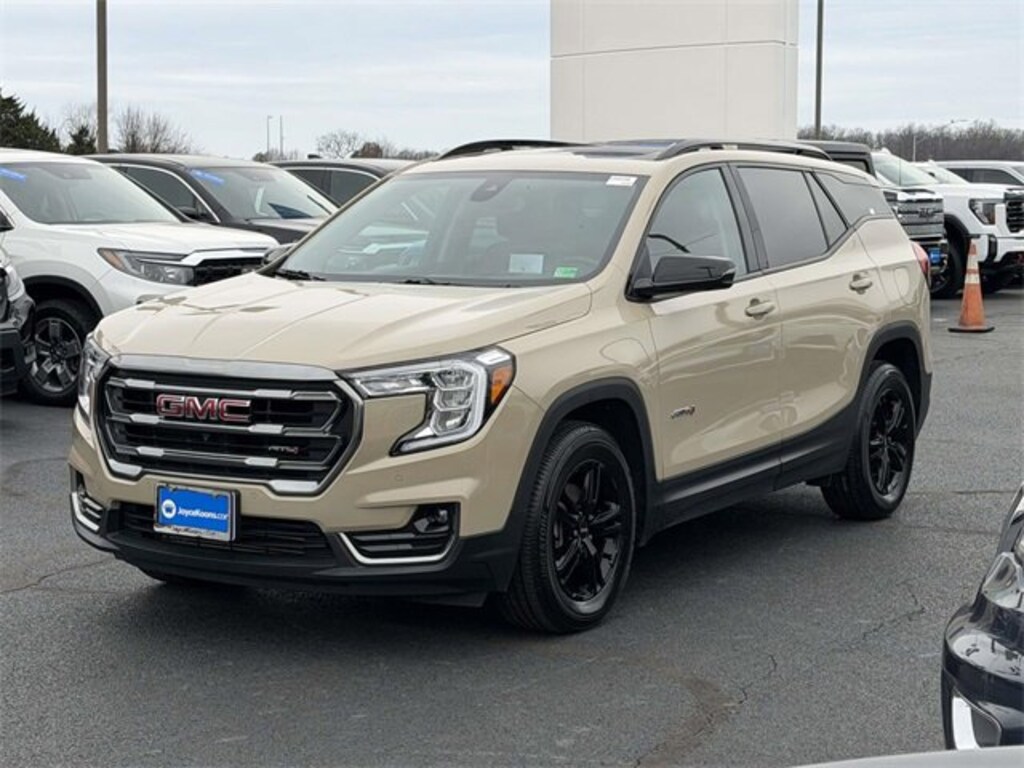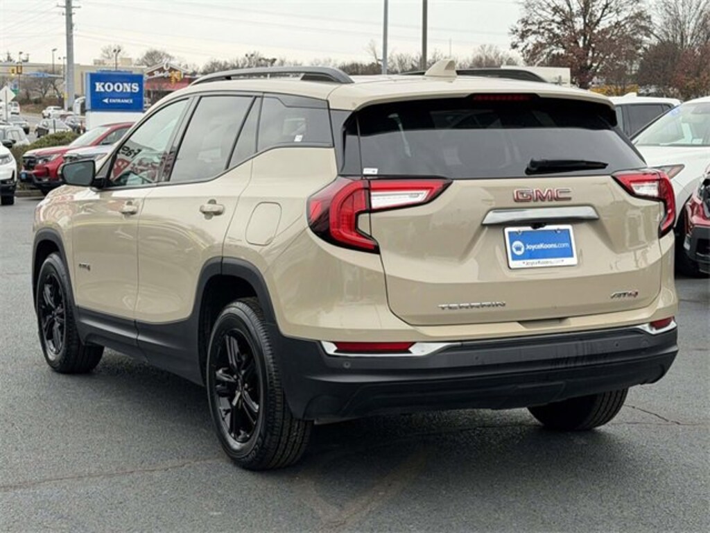 CARFAX One-Owner. Clean CARFAX. Desert Sand Metallic 2023 GMC Terrain AT4 ***ONE OWNER***, ***LOCAL TRADE***, ***DEALER MAINTAINED***, ***EXCELLENT CONDITION***, ***LOADED***, ***ALL WHEEL DRIVE***, ***ADAPTIVE CRUISE CONTROL***, ***ALLOY WHEELS***, ***BACK UP CAMERA***, ***HEADS UP DISPLAY***, ***BLIND SIDE MONITORING***, ***FORWARD COLLISION ALERT***, ***LANE DEPARTURE WARNING***, ***HEATED SEATS***, ***HEATED STEERING WHEEL***, ***LEATHER***, ***ON STAR***, ***POWER LIFTGATE***, ***POWER MOONROOF***, ***POWER SEAT***, ***REMOTE START***, AWD, Adaptive Cruise Control, Front & Rear Park Assist, HD Surround Vision, Head-Up Display, Lane Change Alert w/Side Blind Zone Alert, Rear Cross-Traffic Alert, Rear Park Assist, Safety Alert Seat, Side Blind Zone & Rear Cross Traffic, Tech Package, Terrain Pro Safety Plus, 2 USB Data Ports, 2 USB Data Ports w/SD Card Reader, 3.47 Axle Ratio, 4-Wheel Disc Brakes, 6 Speakers, 6-Speaker Audio System Feature, 6-Way Power Front Passenger Seat, 8-Way Power Driver Seat Adjuster, ABS brakes, Air Conditioning, Alloy wheels, AM/FM radio: SiriusXM, Auto High-beam Headlights, Auto-dimming Rear-View mirror, Automatic temperature control, Bluetooth® For Phone, Brake assist, Bumpers: body-color, Compass, Delay-off headlights, Driver & Front Passenger Heated Seats, Driver door bin, Driver vanity mirror, Dual front impact airbags, Dual front side impact airbags, Electronic Stability Control, Emergency communication system: OnStar and GMC connected services capable, Four wheel independent suspension, Front anti-roll bar, Front Bucket Seats, Front Center Armrest, Front dual zone A/C, Front fog lights, Front Passenger 2-Way Power Lumbar, Front reading lights, Fully automatic headlights, Garage door transmitter, Heated door mirrors, Heated front seats, Heated steering wheel, Illuminated entry, Lane Departure Warning System, License Plate Front Mounting Package, Low tire pressure warning, Memory seat, Occupant sensing airbag, Outside temperature display, Overhead airbag, Overhead console, Panic alarm, Passenger door bin, Passenger vanity mirror, Perforated Leather-Appointed Seat Trim w/AT4 Logo, Power door mirrors, Power Driver Lumbar Control, Power driver seat, Power Liftgate, Power passenger seat, Power steering, Power windows, Preferred Equipment Group 4SC, Radio data system, Radio: GMC Infotainment Audio System w/8 Display, Rear anti-roll bar, Rear seat center armrest, Rear window defroster, Rear window wiper, Remote keyless entry, Roof rack: rails only, Security system, SiriusXM Radio, Skyscape Power Sunroof w/Power Sunscreen, Speed control, Speed-sensing steering, Split folding rear seat, Spoiler, Steering wheel mounted audio controls, Tachometer, Telescoping steering wheel, Tilt steering wheel, Traction control, Trip computer, Turn signal indicator mirrors, Variably intermittent wipers, Wheels: 17 x 7 Gloss Black Aluminum, Wireless Apple CarPlay/Wireless Android Auto, AWD, Adaptive Cruise Control, Front & Rear Park Assist, HD Surround Vision, Head-Up Display, Lane Change Alert w/Side Blind Zone Alert, Rear Cross-Traffic Alert, Rear Park Assist, Safety Alert Seat, Side Blind Zone & Rear Cross Traffic, Tech Package, Terrain Pro Safety Plus.Here is another hand selected pre owned vehicle from Joyce Koons Honda Buick GMC. 24/28 City/Highway MPG