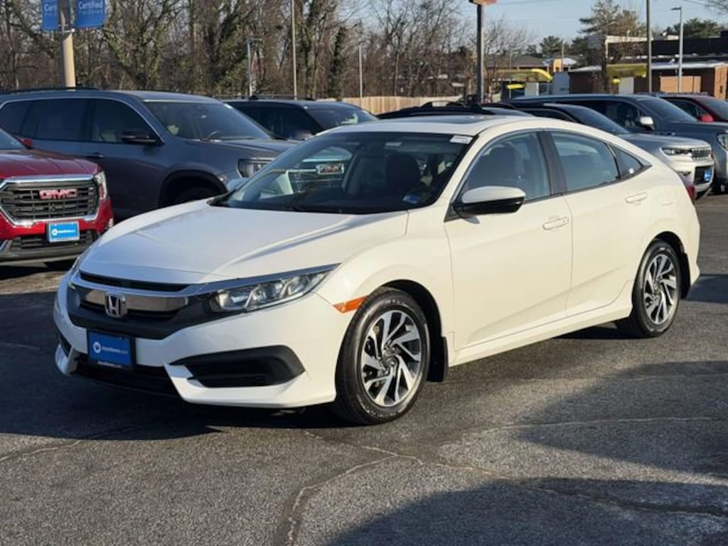White Orchid Pearl 2016 Honda Civic EX Black w/Cloth Seat Trim.Here is another hand selected pre owned vehicle from Joyce Koons Honda Buick GMC. 31/41 City/Highway MPGAwards:* 2016 IIHS Top Safety Pick+ (When equipped with honda sensing) * NACTOY 2016 North American Car of the Year * 2016 KBB.com Brand Image AwardsKelley Blue Book Brand Image Awards are based on the Brand Watch(tm) study from Kelley Blue Book Market Intelligence. Award calculated among non-luxury shoppers. For more information, visit www.kbb.com. Kelley Blue Book is a registered trademark of Kelley Blue Book Co., Inc.