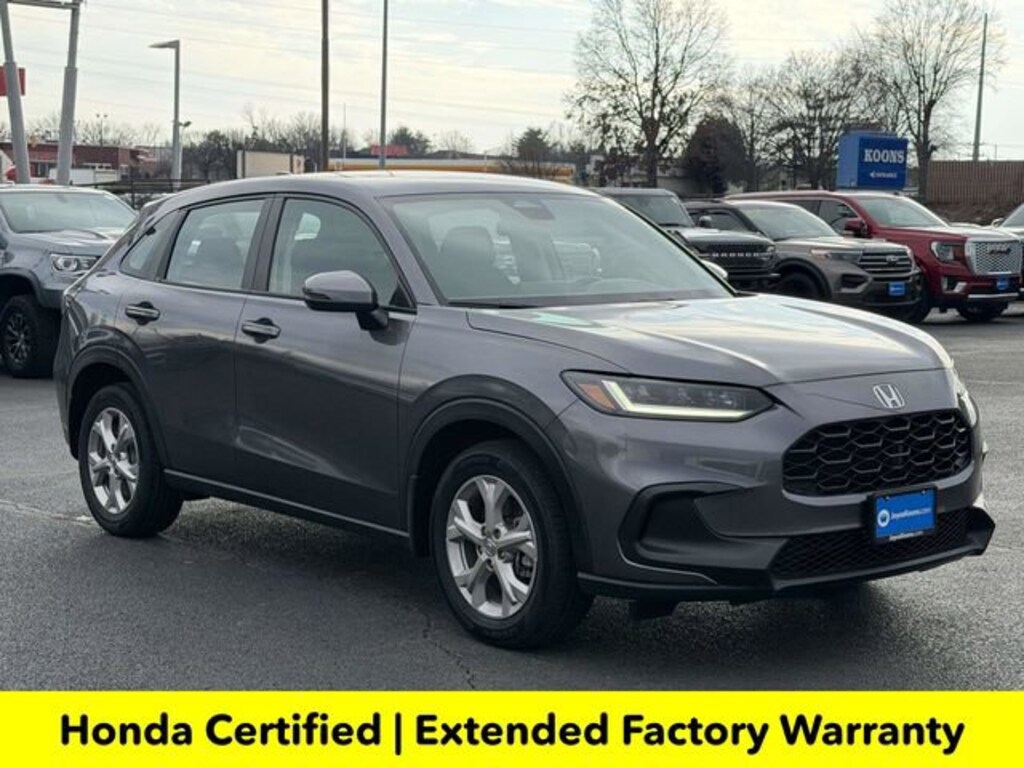 CARFAX One-Owner. Clean CARFAX. Certified. Modern Steel Metallic 2023 Honda HR-V LX ***ONE OWNER***, ***LOW MILES***, ***LOCAL TRADE***, ***DEALER MAINTAINED***, ***EXCELLENT CONDITION***, ***HONDA CERTIFIED***, ***ALL WHEEL DRIVE***, ***ADAPTIVE CRUISE CONTROL***, ***ALLOY WHEELS***, ***FORWARD COLLISION ALERT***, ***LANE DEPARTURE WARNING***, HondaTrue Certified Certified, 4 Speakers, 4-Wheel Disc Brakes, 5.436 Axle Ratio, ABS brakes, Adaptive Cruise Control: Adaptive Cruise Control (ACC) with Low-Speed Follow, Air Conditioning, Alloy wheels, AM/FM radio, Apple CarPlay/Android Auto, Auto High-beam Headlights, Automatic temperature control, Brake assist, Bumpers: body-color, Cloth Seat Trim, Delay-off headlights, Driver door bin, Driver vanity mirror, Dual front impact airbags, Dual front side impact airbags, Electronic Stability Control, Emergency communication system: HondaLink, Exterior Parking Camera Rear, Four wheel independent suspension, Front anti-roll bar, Front Bucket Seats, Front Center Armrest, Front reading lights, Fully automatic headlights, Illuminated entry, Knee airbag, Low tire pressure warning, Occupant sensing airbag, Outside temperature display, Overhead airbag, Panic alarm, Passenger door bin, Passenger vanity mirror, Power door mirrors, Power steering, Power windows, Radio data system, Radio: 180-Watt Audio System w/4 Speakers, Rear anti-roll bar, Rear reading lights, Rear side impact airbag, Rear window defroster, Rear window wiper, Remote keyless entry, Security system, Speed control, Speed-sensing steering, Split folding rear seat, Spoiler, Steering wheel mounted audio controls, Tachometer, Telescoping steering wheel, Tilt steering wheel, Traction control, Trip computer, Variably intermittent wipers, Wheels: 17 Silver Painted Alloy.Here is another hand selected pre owned vehicle from Joyce Koons Honda Buick GMC. Odometer is 8665 miles below market average! 25/30 City/Highway MPGHondaTrue Certified Details:* Transferable Warranty* Warranty Deductible: $0* Vehicle History* Roadside Assistance* Limited Warranty: 24 Month/100,000 Mile (whichever comes first) after new car warranty expires or from certified purchase date* 182 Point Inspection* Powertrain Limited Warranty: 84 Month/100,000 Mile (whichever comes first) from original in-service date* Vehicles purchased within New Vehicle Limited Warranty period: extends New Vehicle Limited Warranty to 5 years*/60,000 miles*. Honda Care Roadside Assistance for 2 year/100,000 miles (whichever occurs first). Up to two complimentary oil changes within the first year of ownership. SiriusXM 90-Day Trial.