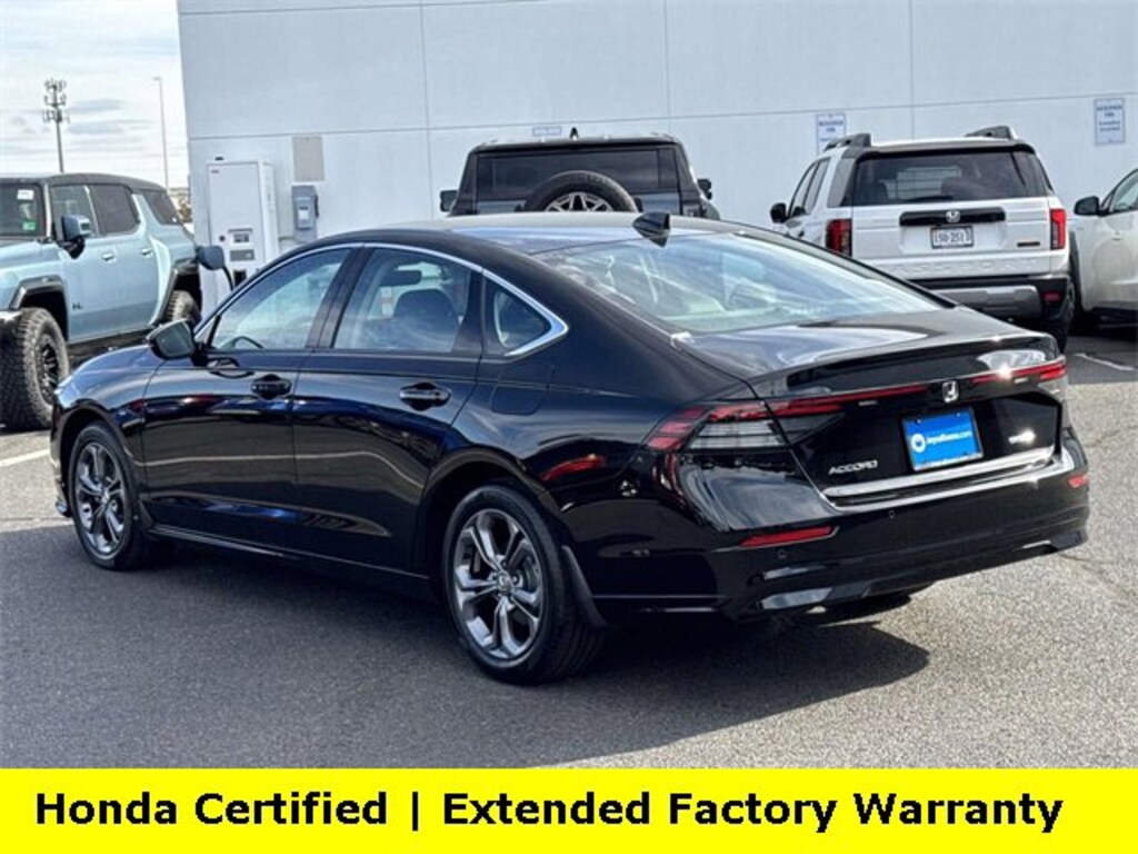 Clean CARFAX. Certified. Crystal Black Pearl 2025 Honda Accord Hybrid EX-L ***ONE OWNER***, ***LOW MILES***, ***DEALER MAINTAINED***, ***EXCELLENT CONDITION***, ***HONDA CERTIFIED***, ***ADAPTIVE CRUISE CONTROL***, ***ALLOY WHEELS***, ***BACK UP CAMERA***, ***BLIND SIDE MONITORING***, ***FORWARD COLLISION ALERT***, ***LANE DEPARTURE WARNING***, ***HEATED SEATS***, ***LEATHER***, ***POWER MOONROOF***, ***POWER SEATS***, ***REMOTE START***, HondaTrue Certified Certified, 2.0L I4 DOHC 16V, 4-Wheel Disc Brakes, 8 Speakers, ABS brakes, Adaptive Cruise Control: Adaptive Cruise Control (ACC) with Low-Speed Follow, Air Conditioning, Alloy wheels, AM/FM radio, Apple CarPlay/Android Auto, Auto High-beam Headlights, Auto-dimming Rear-View mirror, Automatic temperature control, Blind Spot Information (BSI) System warning, Brake assist, Bumpers: body-color, Compass, Delay-off headlights, Driver door bin, Driver vanity mirror, Dual front impact airbags, Dual front side impact airbags, Electronic Stability Control, Emergency communication system: HondaLink, Exterior Parking Camera Rear, Four wheel independent suspension, Front anti-roll bar, Front Bucket Seats, Front Center Armrest, Front dual zone A/C, Front reading lights, Fully automatic headlights, Heated door mirrors, Heated Front Bucket Seats, Heated front seats, Illuminated entry, Knee airbag, Lane departure: Lane Keeping Assist System (LKAS) active, Leather Shift Knob, Leather steering wheel, Leather-Trimmed Seat Trim, Low tire pressure warning, Memory seat, Occupant sensing airbag, Outside temperature display, Overhead airbag, Overhead console, Panic alarm, Passenger door bin, Passenger vanity mirror, Power door mirrors, Power driver seat, Power moonroof, Power passenger seat, Power steering, Power windows, Radio data system, Radio: 180-Watt Audio System, Rear anti-roll bar, Rear reading lights, Rear seat center armrest, Rear side impact airbag, Rear window defroster, Remote keyless entry, Security system, Speed control, Speed-sensing steering, Speed-Sensitive Wipers, Split folding rear seat, Steering wheel mounted audio controls, Telescoping steering wheel, Tilt steering wheel, Traction control, Trip computer, Turn signal indicator mirrors, Variably intermittent wipers, Wheels: 17 x 7.5J Pewter Gray, 2.0L I4 DOHC 16V.