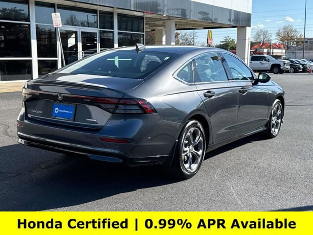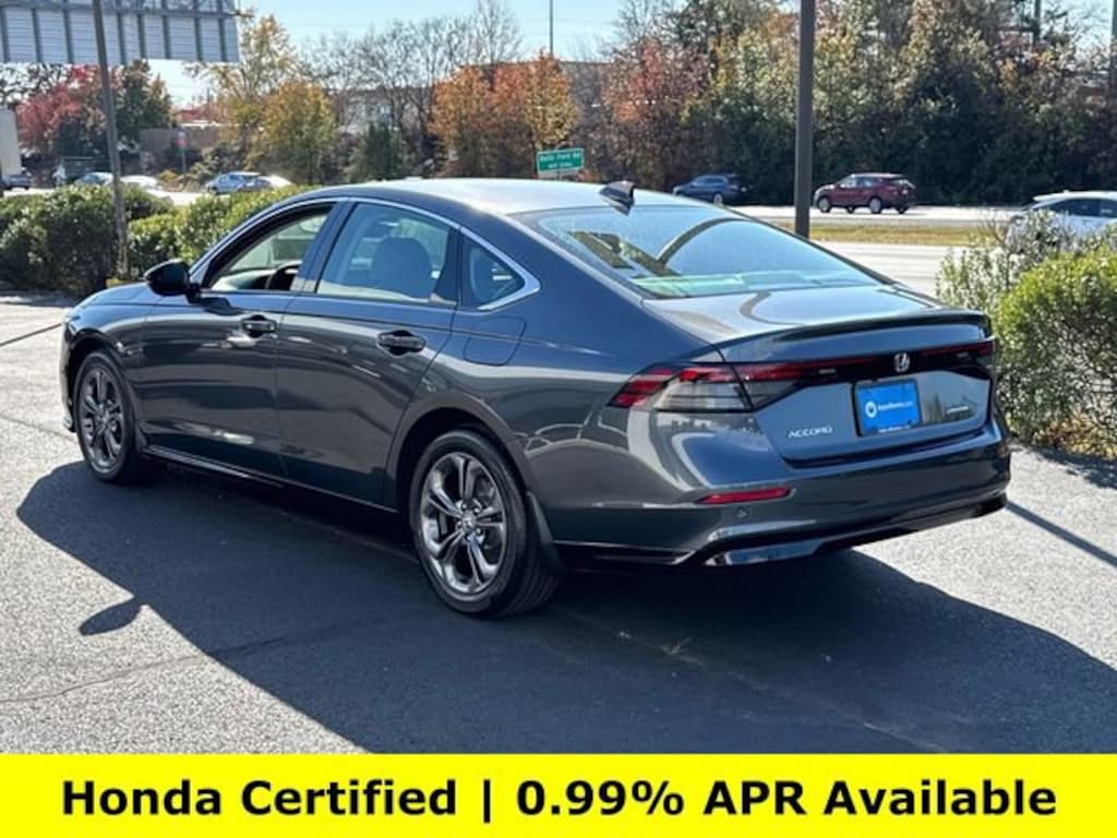 CARFAX One-Owner. Clean CARFAX. Certified. Meteorite Gray Metallic 2025 Honda Accord Hybrid EX-L ***ONE OWNER***, ***LOW MILES***, ***DEALER MAINTAINED***, ***EXCELLENT CONDITION***, ***HONDA CERTIFIED***, ***ADAPTIVE CRUISE CONTROL***, ***ALLOY WHEELS***, ***BACK UP CAMERA***, ***BLIND SIDE MONITORING***, ***FORWARD COLLISION ALERT***, ***LANE DEPARTURE WARNING***, ***HEATED SEATS***, ***LEATHER***, ***POWER MOONROOF***, ***POWER SEATS***, ***REMOTE START***, HondaTrue Certified Certified, 2.0L I4 DOHC 16V, 4-Wheel Disc Brakes, 8 Speakers, ABS brakes, Adaptive Cruise Control: Adaptive Cruise Control (ACC) with Low-Speed Follow, Air Conditioning, Alloy wheels, AM/FM radio, Apple CarPlay/Android Auto, Auto High-beam Headlights, Auto-dimming Rear-View mirror, Automatic temperature control, Blind Spot Information (BSI) System warning, Brake assist, Bumpers: body-color, Compass, Delay-off headlights, Driver door bin, Driver vanity mirror, Dual front impact airbags, Dual front side impact airbags, Electronic Stability Control, Emergency communication system: HondaLink, Exterior Parking Camera Rear, Four wheel independent suspension, Front anti-roll bar, Front Bucket Seats, Front Center Armrest, Front dual zone A/C, Front reading lights, Fully automatic headlights, Heated door mirrors, Heated Front Bucket Seats, Heated front seats, Illuminated entry, Knee airbag, Lane departure: Lane Keeping Assist System (LKAS) active, Leather Shift Knob, Leather steering wheel, Leather-Trimmed Seat Trim, Low tire pressure warning, Memory seat, Occupant sensing airbag, Outside temperature display, Overhead airbag, Overhead console, Panic alarm, Passenger door bin, Passenger vanity mirror, Power door mirrors, Power driver seat, Power moonroof, Power passenger seat, Power steering, Power windows, Radio data system, Radio: 180-Watt Audio System, Rear anti-roll bar, Rear reading lights, Rear seat center armrest, Rear side impact airbag, Rear window defroster, Remote keyless entry, Security system, Speed control, Speed-sensing steering, Speed-Sensitive Wipers, Split folding rear seat, Steering wheel mounted audio controls, Telescoping steering wheel, Tilt steering wheel, Traction control, Trip computer, Turn signal indicator mirrors, Variably intermittent wipers, Wheels: 17 x 7.5J Pewter Gray, 2.0L I4 DOHC 16V.