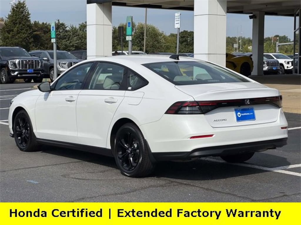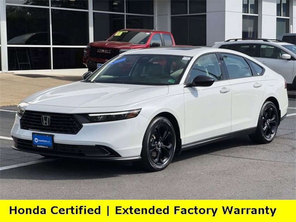 CARFAX One-Owner. Clean CARFAX. Certified. Platinum White Pearl 2025 Honda Accord SE ***ONE OWNER***, ***LOW MILES***, ***DEALER MAINTAINED***, ***EXCELLENT CONDITION***, ***HONDA CERTIFIED***, ***ADAPTIVE CRUISE CONTROL***, ***ALLOY WHEELS***, ***BACK UP CAMERA***, ***BLIND SIDE MONITORING***, ***FORWARD COLLISION ALERT***, ***LANE DEPARTURE WARNING***, ***HEATED SEATS***, ***POWER MOONROOF***, ***POWER SEAT***, ***REMOTE START***, HondaTrue Certified Certified, Gray Cloth, 4-Wheel Disc Brakes, 8 Speakers, ABS brakes, Adaptive Cruise Control: Adaptive Cruise Control (ACC) with Low-Speed Follow, Air Conditioning, Alloy wheels, AM/FM radio, Apple CarPlay/Android Auto, Auto High-beam Headlights, Automatic temperature control, Blind Spot Information (BSI) System warning, Brake assist, Bumpers: body-color, Compass, Delay-off headlights, Driver door bin, Driver vanity mirror, Dual front impact airbags, Dual front side impact airbags, Electronic Stability Control, Emergency communication system: HondaLink Assist, Exterior Parking Camera Rear, Fabric Seat Trim, Four wheel independent suspension, Front anti-roll bar, Front Bucket Seats, Front Center Armrest, Front dual zone A/C, Front reading lights, Fully automatic headlights, Heated door mirrors, Heated Front Bucket Seats, Heated front seats, Illuminated entry, Knee airbag, Lane departure: Lane Keeping Assist System (LKAS) active, Low tire pressure warning, Occupant sensing airbag, Outside temperature display, Overhead airbag, Overhead console, Panic alarm, Passenger door bin, Passenger vanity mirror, Power door mirrors, Power driver seat, Power moonroof, Power steering, Power windows, Radio data system, Radio: 180-Watt Audio System, Rear anti-roll bar, Rear reading lights, Rear seat center armrest, Rear side impact airbag, Rear window defroster, Remote keyless entry, Security system, Speed control, Speed-sensing steering, Speed-Sensitive Wipers, Split folding rear seat, Steering wheel mounted audio controls, Tachometer, Telescoping steering wheel, Tilt steering wheel, Traction control, Trip computer, Variably intermittent wipers, Wheels: 17 x 7.5J Berlina Black, Gray Cloth.Here is another hand selected pre owned vehicle from Joyce Koons Honda Buick GMC. 29/37 City/Highway MPGHondaTrue Certified Details:* Powertrain Limited Warranty: 84 Month/100,000 Mile (whichever comes first) from original in-service date* Transferable Warranty* Warranty Deductible: $0* Limited Warranty: 24 Month/100,000 Mile (whichever comes first) after new car warranty expires or from certified purchase date* Roadside Assistance* Vehicles purchased within New Vehicle Limited Warranty period: extends New Vehicle Limited Warranty to 5 years*/60,000 miles*. Honda Care Roadside Assistance for 2 year/100,000 miles (whichever occurs first). Up to two complimentary oil changes within the first year of ownership. SiriusXM 90-Day Trial.* Vehicle History* 182 Point Inspection