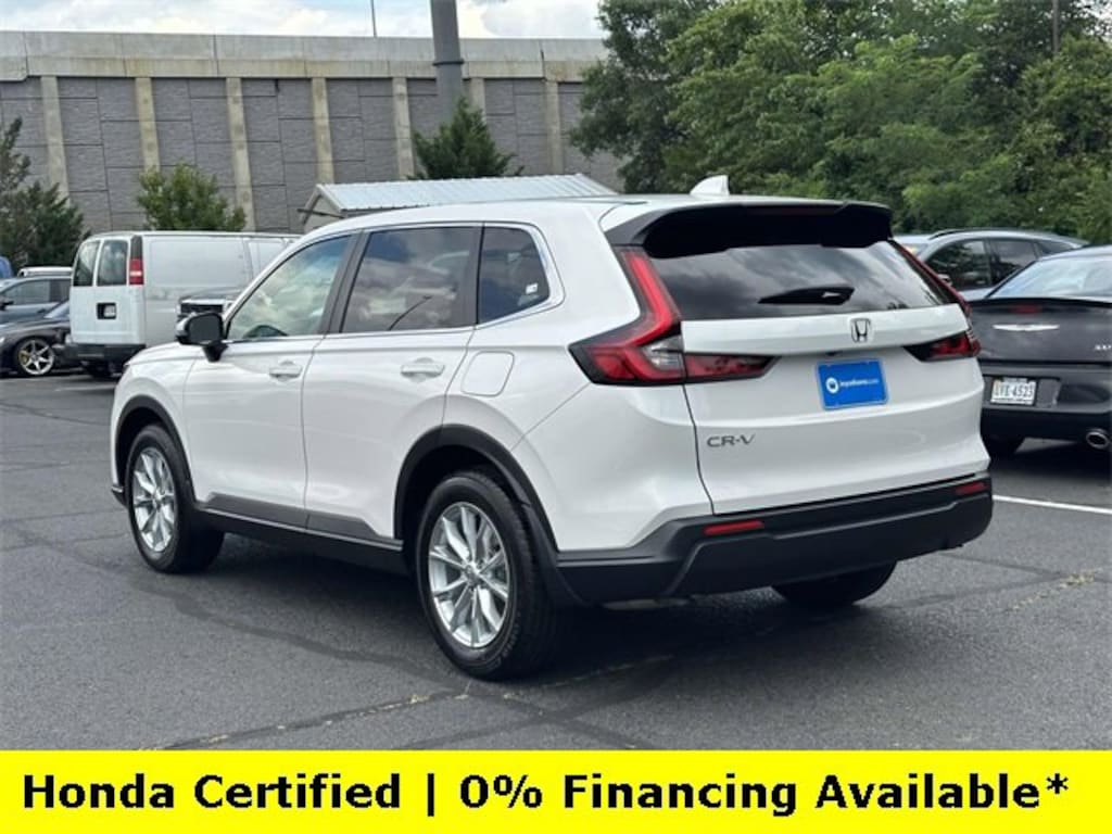 CARFAX One-Owner. Clean CARFAX. Certified. Platinum White 2025 Honda CR-V EX ***ONE OWNER***, ***LOW MILES***, ***DEALER MAINTAINED***, ***EXCELLENT CONDITION***, ***HONDA CERTIFIED***, ***ALL WHEEL DRIVE***, ***ADAPTIVE CRUISE CONTROL***, ***ALLOY WHEELS***, ***BACK UP CAMERA***, ***BLIND SIDE MONITORING***, ***FORWARD COLLISION ALERT***, ***LANE DEPARTURE WARNING***, ***HEATED SEATS***, ***POWER MOONROOF***, ***POWER SEAT***, ***REMOTE START***, HondaTrue Certified Certified, AWD, 4-Wheel Disc Brakes, 6 Speakers, ABS brakes, Adaptive Cruise Control: Adaptive Cruise Control (ACC) with Low-Speed Follow, Air Conditioning, Alloy wheels, Apple CarPlay/Android Auto, Auto High-beam Headlights, Automatic temperature control, Blind Spot Information (BSI) System warning, Brake assist, Bumpers: body-color, Cloth Seat Trim, Compass, Delay-off headlights, Driver door bin, Driver vanity mirror, Dual front impact airbags, Dual front side impact airbags, Electronic Stability Control, Exterior Parking Camera Rear, Four wheel independent suspension, Front anti-roll bar, Front Bucket Seats, Front Center Armrest, Front dual zone A/C, Front reading lights, Fully automatic headlights, Heated door mirrors, Heated Front Bucket Seats, Heated front seats, Illuminated entry, Knee airbag, Low tire pressure warning, Occupant sensing airbag, Outside temperature display, Overhead airbag, Overhead console, Panic alarm, Passenger door bin, Passenger vanity mirror, Power door mirrors, Power driver seat, Power moonroof, Power steering, Power windows, Radio data system, Radio: 240-Watt AM/FM Audio System, Rear anti-roll bar, Rear reading lights, Rear seat center armrest, Rear side impact airbag, Rear window defroster, Rear window wiper, Remote keyless entry, Security system, Speed control, Speed-sensing steering, Speed-Sensitive Wipers, Split folding rear seat, Spoiler, Steering wheel mounted audio controls, Tachometer, Telescoping steering wheel, Tilt steering wheel, Traction control, Trip computer, Turn signal indicator mirrors, Variably intermittent wipers, Wheels: 18 Sparkle Silver Metallic, AWD.