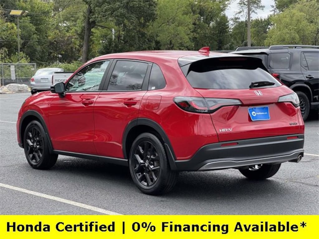 Clean CARFAX. Certified. Milano Red 2025 Honda HR-V Sport ***ONE OWNER***, ***LOW MILES***, ***DEALER MAINTAINED***, ***EXCELLENT CONDITION***, ***HONDA CERTIFIED***, ***ALL WHEEL DRIVE***, ***ADAPTIVE CRUISE CONTROL***, ***ALLOY WHEELS***, ***BACK UP CAMERA***, ***BLIND SIDE MONITORING***, ***FORWARD COLLISION ALERT***, ***LANE DEPARTURE WARNING***, ***HEATED SEATS***, ***REMOTE START***, HondaTrue Certified Certified, 4-Wheel Disc Brakes, 5.436 Axle Ratio, 6 Speakers, ABS brakes, Adaptive Cruise Control: Adaptive Cruise Control (ACC) with Low-Speed Follow, Air Conditioning, Alloy wheels, AM/FM radio, Apple CarPlay/Android Auto, Auto High-beam Headlights, Automatic temperature control, Blind Spot Information (BSI) System warning, Brake assist, Bumpers: body-color, Cloth Seat Trim, Delay-off headlights, Driver door bin, Driver vanity mirror, Dual front impact airbags, Dual front side impact airbags, Electronic Stability Control, Exterior Parking Camera Rear, Four wheel independent suspension, Front anti-roll bar, Front Bucket Seats, Front Center Armrest, Front reading lights, Fully automatic headlights, Heated door mirrors, Heated Front Bucket Seats, Heated front seats, Illuminated entry, Knee airbag, Leather Shift Knob, Leather steering wheel, Low tire pressure warning, Occupant sensing airbag, Outside temperature display, Overhead airbag, Panic alarm, Passenger door bin, Passenger vanity mirror, Power door mirrors, Power steering, Power windows, Radio data system, Radio: 180-Watt Audio System w/6 Speakers, Rear anti-roll bar, Rear reading lights, Rear side impact airbag, Rear window defroster, Rear window wiper, Remote keyless entry, Security system, Speed control, Speed-sensing steering, Split folding rear seat, Spoiler, Steering wheel mounted audio controls, Tachometer, Telescoping steering wheel, Tilt steering wheel, Traction control, Trip computer, Turn signal indicator mirrors, Variably intermittent wipers, Wheels: 18 Gloss Black Alloy.