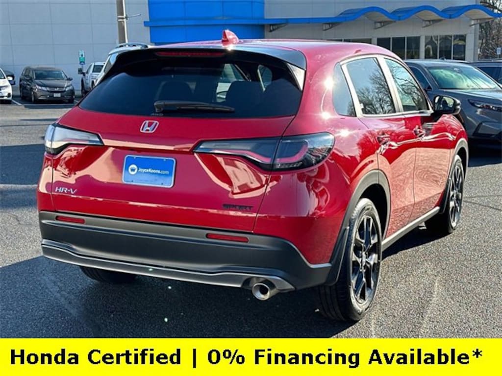 CARFAX One-Owner. Clean CARFAX. Certified. Milano Red 2025 Honda HR-V Sport ***ONE OWNER***, ***LOW MILES***, ***DEALER MAINTAINED***, ***EXCELLENT CONDITION***, ***HONDA CERTIFIED***, ***ALL WHEEL DRIVE***, ***ADAPTIVE CRUISE CONTROL***, ***ALLOY WHEELS***, ***BACK UP CAMERA***, ***BLIND SIDE MONITORING***, ***FORWARD COLLISION ALERT***, ***LANE DEPARTURE WARNING***, ***HEATED SEATS***, ***REMOTE START***, HondaTrue Certified Certified, 4-Wheel Disc Brakes, 5.436 Axle Ratio, 6 Speakers, ABS brakes, Adaptive Cruise Control: Adaptive Cruise Control (ACC) with Low-Speed Follow, Air Conditioning, Alloy wheels, AM/FM radio, Apple CarPlay/Android Auto, Auto High-beam Headlights, Automatic temperature control, Blind Spot Information (BSI) System warning, Brake assist, Bumpers: body-color, Cloth Seat Trim, Delay-off headlights, Driver door bin, Driver vanity mirror, Dual front impact airbags, Dual front side impact airbags, Electronic Stability Control, Emergency communication system: HondaLink, Exterior Parking Camera Rear, Four wheel independent suspension, Front anti-roll bar, Front Bucket Seats, Front Center Armrest, Front reading lights, Fully automatic headlights, Heated door mirrors, Heated Front Bucket Seats, Heated front seats, Illuminated entry, Knee airbag, Leather Shift Knob, Leather steering wheel, Low tire pressure warning, Occupant sensing airbag, Outside temperature display, Overhead airbag, Panic alarm, Passenger door bin, Passenger vanity mirror, Power door mirrors, Power steering, Power windows, Radio data system, Radio: 180-Watt Audio System w/6 Speakers, Rear anti-roll bar, Rear reading lights, Rear side impact airbag, Rear window defroster, Rear window wiper, Remote keyless entry, Security system, Speed control, Speed-sensing steering, Split folding rear seat, Spoiler, Steering wheel mounted audio controls, Tachometer, Telescoping steering wheel, Tilt steering wheel, Traction control, Trip computer, Turn signal indicator mirrors, Variably intermittent wipers, Wheels: 18 Gloss Black Alloy.