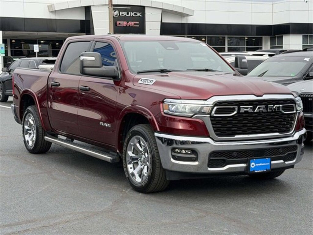 CARFAX One-Owner. Clean CARFAX. Delmonico Red Pearlcoat 2025 Ram 1500 Big Horn/Lone Star ***ONE OWNER***, ***LOCAL TRADE***, ***DEALER MAINTAINED***, ***EXCELLENT CONDITION***, ***4 WHEEL DRIVE***, ***ADAPTIVE CRUISE CONTROL***, ***ALLOY WHEELS***, ***BACK UP CAMERA***, ***BLIND SIDE MONITORING***, ***FORWARD COLLISION ALERT***, ***LANE DEPARTURE WARNING***, ***HEATED SEATS***, ***HEATED STEERING WHEEL***, ***SIRIUS XM RADIO***, ***NAVIGATION***, ***POWER MOONROOF***, ***POWER SEAT***, ***TOW PACKAGE***, Apple CarPlay/Android Auto, 115V Auxiliary Power Outlet, 115V Auxiliary Rear Power Outlet, 12 Touchscreen Display, 2nd Row In Floor Storage Bins, 3 Rear Seat Head Restraints, 33 Gallon Fuel Tank, 4 Way Front Headrests, 4-Wheel Disc Brakes, 400W Inverter, 4G LTE Wi-Fi Hot Spot, 6 Speakers, 9 Amplified Speakers w/Subwoofer, ABS brakes, Accent Color Tailgate Handle, Air Conditioning, Air Conditioning ATC w/Dual Zone Control, AM/FM radio, Apple CarPlay, Auto High-beam Headlights, Auto Power-Folding Mirrors, Auto-Dimming Exterior Driver Mirror, Auto-Dimming Rear-View Mirror, Big Horn Level 2 Equipment Group, Black Exterior Mirrors, Black Premium Power Mirrors, Black Trailer Tow Power Mirrors, Brake assist, Bumpers: chrome, Cloth Bench Seat, Cluster 7.0 TFT Color Display, Compass, Configurable Drive Mode, Connected Travel & Traffic Services, Connectivity - US/Canada, Convex Wide-Angle Exterior Mirror Insert, Delay-off headlights, Dome Dual LED Reading Lamp, Dual front impact airbags, Dual front side impact airbags, Dual-Pane Panoramic Sunroof, Electronic Stability Control, Exterior Mirrors Courtesy Lamps, Exterior Mirrors w/Heating Element, Exterior Mirrors w/Supplemental Signals, Front anti-roll bar, Front fog lights, Front License Plate Bracket, Front wheel independent suspension, Fully automatic headlights, Glove Box Lamp, Google Android Auto, GPS Antenna Input, GPS Navigation, HD Radio, Heated door mirrors, Heated Front Seats, Heated Steering Wheel, Illuminated entry, Integrated Voice Command w/Bluetooth, Leather Wrapped Steering Wheel, LED Dome Lamp w/On/Off Switch, LED Footwell Lighting, Low tire pressure warning, Manual Adjust 4-Way Front Passenger Seat, Manual Folding Exterior Mirrors, Manual Telescoping Mirrors, Media Hub w/2 Charge Only USBs, Mirror Clearance/Running Lights, Occupant sensing airbag, Outside temperature display, Overhead airbag, Overhead console, Overhead LED Lamps, Panic alarm, ParkView Rear Back-Up Camera, Passenger vanity mirror, Power 2-Way Driver Lumbar Adjust, Power Adjust 8-Way Driver Seat, Power Adjustable Pedals, Power door mirrors, Power steering, Power windows, Power-Adjustable Convex Aux Mirrors, Premium Overhead Console, Quick Order Package 21Z Big Horn, Radio data system, Radio: Uconnect 5 Nav w/12.0 Display, Radio: Uconnect 5 W w/8.4 Display, RAM Grille Badge - Chrome, Rear 60/40 Folding Seat, Rear anti-roll bar, Rear Power Sliding Window, Rear step bumper, Rear Window Defroster, Remote keyless entry, Remote Tailgate Release, Security Alarm, SiriusXM w/360L, Speed control, Split folding rear seat, Steering Wheel Mounted Audio Controls, Sun Visors w/Illuminated Vanity Mirrors, Supplier Part Tracking (J-1), Tachometer, Telescoping steering wheel, Tilt steering wheel, Traction control, Trailer Brake Control, Trailer Reverse Steering Control, Trailer Tire Pressure Monitoring System, Trailer Tow Group, Trailer Tow Mirrors, Trip computer, Universal Garage Door Opener, USB Host Flip, Variably intermittent wipers, Voltmeter, Wheels: 20 x 9 Aluminum Chrome Clad (WRK), Apple CarPlay/Android Auto.