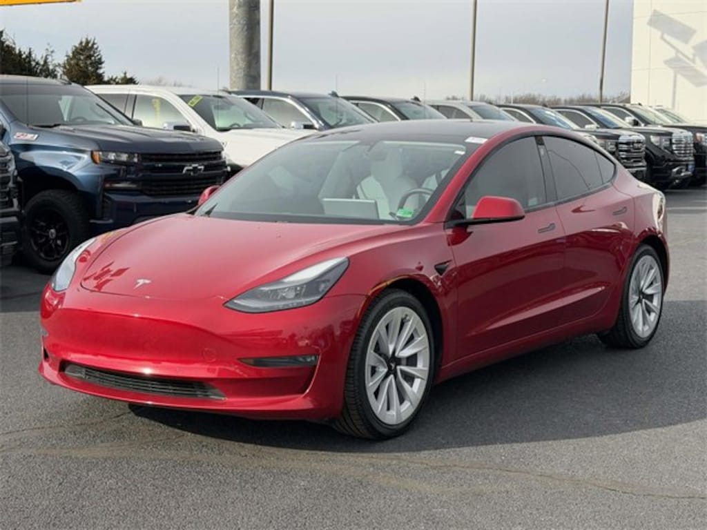 CARFAX One-Owner. Clean CARFAX. Red Multi-Coat 2021 Tesla Model 3 Long Range ***ONE OWNER***, ***LOCAL TRADE***, ***LOADED***, ***ALL WHEEL DRIVE***, ***ADAPTIVE CRUISE CONTROL***, ***ALLOY WHEELS***, ***BACK UP CAMERA***, ***BLIND SIDE MONITORING***, ***FORWARD COLLISION ALERT***, ***LANE DEPARTURE WARNING***, ***HEATED SEATS***, ***NAVIGATION***, ***POWER SEATS***, 15 Speakers, 4-Wheel Disc Brakes, ABS brakes, Air Conditioning, Alloy wheels, Auto High-beam Headlights, Auto-dimming door mirrors, Auto-dimming Rear-View mirror, Automatic temperature control, Brake assist, Bumpers: body-color, Compass, Delay-off headlights, Driver door bin, Driver vanity mirror, Dual front impact airbags, Dual front side impact airbags, Electronic Stability Control, Exterior Parking Camera Rear, Four wheel independent suspension, Front anti-roll bar, Front Bucket Seats, Front Center Armrest, Front dual zone A/C, Front fog lights, Front reading lights, Fully automatic headlights, Genuine wood dashboard insert, Heated door mirrors, Heated front seats, Heated rear seats, Heated steering wheel, Illuminated entry, Knee airbag, Lane Departure Warning System, Low tire pressure warning, Memory seat, Navigation System, Occupant sensing airbag, Outside temperature display, Overhead airbag, Passenger door bin, Passenger vanity mirror, Power door mirrors, Power driver seat, Power passenger seat, Power steering, Power windows, Premium Audio System, Premium Heated Front Bucket Seats, Premium Seat Trim, Radio data system, Rear reading lights, Rear seat center armrest, Rear window defroster, Security system, Speed control, Speed-sensing steering, Split folding rear seat, Steering wheel memory, Steering wheel mounted A/C controls, Steering wheel mounted audio controls, Telescoping steering wheel, Tilt steering wheel, Traction control, Trip computer, Variably intermittent wipers, Wheels: 18 x 8.5 Aero.Here is another hand selected pre owned vehicle from Joyce Koons Honda Buick GMC. Odometer is 1201 miles below market average! 141/127 City/Highway MPG