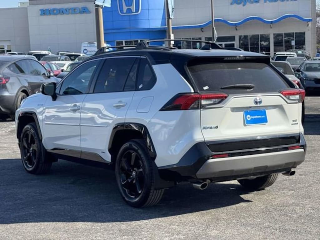 CARFAX One-Owner. Blizzard Pearl/Midnight Black Metallic 2021 Toyota RAV4 Hybrid XSE ***ONE OWNER***, ***LOCAL TRADE***, ***DEALER MAINTAINED***, ***LOADED***, ***ALL WHEEL DRIVE***, ***ALLOY WHEELS***, ***BACK UP CAMERA***, ***BLIND SIDE MONITORING***, ***FORWARD COLLISION ALERT***, ***LANE DEPARTURE WARNING***, ***HEATED SEATS***, ***HEATED STEERING WHEEL***, ***POWER MOONROOF***, ***POWER SEAT***, 2.5L 4-Cylinder, Blind Spot Monitor, Front & Rear Parking Assist w/Automated Braking, Heated 3-Spoke Leather Steering Wheel, Intelligent Clearance Sonar (ICS), Qi-Compatible Wireless Smartphone Charging, Rain Sensing Front Wipers, Wiper Deicer, XSE Advanced Technology Package, XSE Grade Weather Package, 3 Spoke Leather Steering Wheel, 4-Wheel Disc Brakes, 6 Speakers, ABS brakes, Air Conditioning, Alloy wheels, AM/FM radio: SiriusXM, Anti-Theft System, Apple CarPlay/Android Auto, Auto High-beam Headlights, Auto-dimming Rear-View mirror, Automatic temperature control, Axle Ratio: TBD, Brake assist, Bumpers: body-color, Delay-off headlights, Driver door bin, Driver vanity mirror, Dual front impact airbags, Dual front side impact airbags, Electronic Stability Control, Emergency communication system: Safety Connect with 1-year trial, Four wheel independent suspension, Front anti-roll bar, Front Bucket Seats, Front Center Armrest, Front Door Smart Key System w/Push Button Start, Front dual zone A/C, Front Fog & Driving Lamp, Front fog lights, Front reading lights, Front Seat Heating, Fully automatic headlights, Garage door transmitter: HomeLink, Heated door mirrors, Heated Front Seats, Heated front seats, Illuminated entry, Knee airbag, Lane Departure Warning System, Leather Shift Knob, Low tire pressure warning, Occupant sensing airbag, Outside temperature display, Overhead airbag, Overhead console, Panic alarm, Passenger door bin, Passenger vanity mirror, Power door mirrors, Power driver seat, Power Liftgate, Power moonroof, Power steering, Power windows, Radio data system, Radio: Audio Plus, Rear anti-roll bar, Rear seat center armrest, Rear window defroster, Rear window wiper, Remote keyless entry, Roof rack: rails only, Security system, SofTex Seat Trim (EC), Speed control, Speed-sensing steering, Split folding rear seat, Spoiler, Steering wheel mounted audio controls, Telescoping steering wheel, Tilt steering wheel, Traction control, Trip computer, Turn signal indicator mirrors, Variably intermittent wipers, Wheels: 18 x 7.0J Black-Painted Aluminum Alloy, 2.5L 4-Cylinder, Blind Spot Monitor, Front & Rear Parking Assist w/Automated Braking, Heated 3-Spoke Leather Steering Wheel, Intelligent Clearance Sonar (ICS), Qi-Compatible Wireless Smartphone Charging, Rain Sensing Front Wipers, Wiper Deicer, XSE Advanced Technology Package, XSE Grade Weather Package.