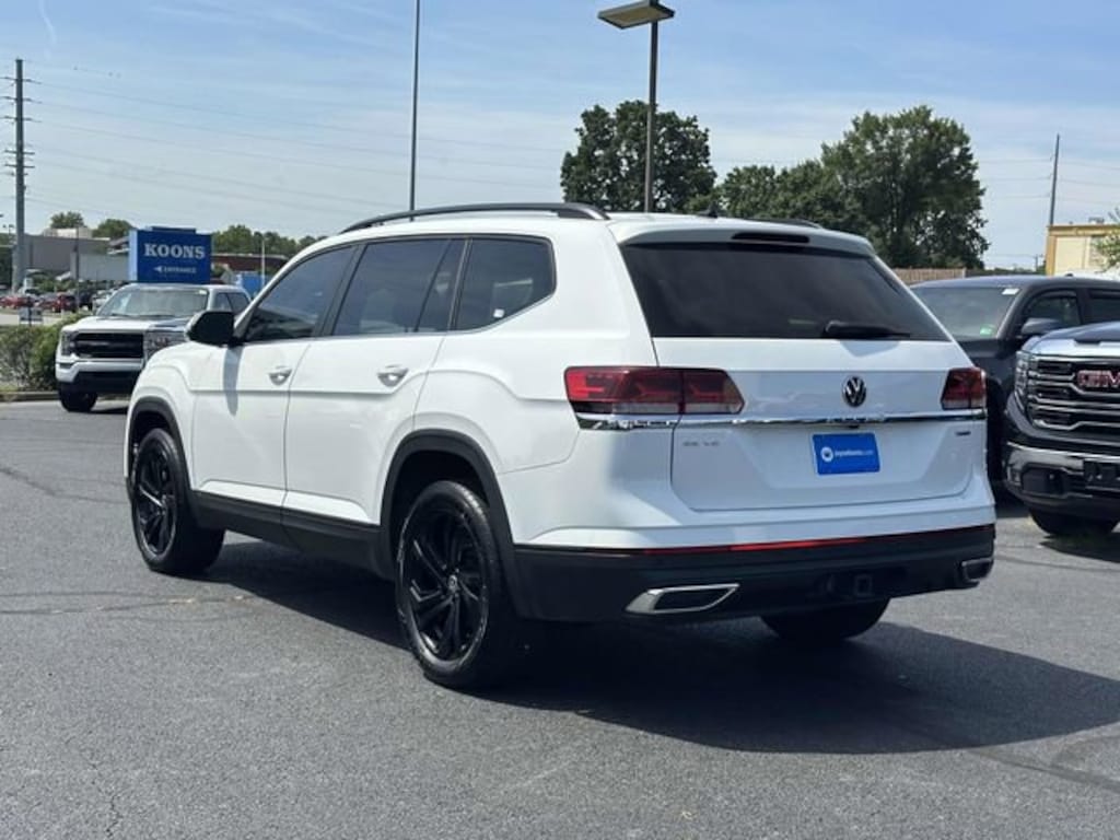 CARFAX One-Owner. Pure White 2023 Volkswagen Atlas 3.6L V6 SE w/Technology ***3RD ROW SEATS***, ***ALL WHEEL DRIVE***, ***ADAPTIVE CRUISE CONTROL***, ***ALLOY WHEELS***, ***BACK UP CAMERA***, ***BLIND SIDE MONITORING***, ***FORWARD COLLISION ALERT***, ***HEATED SEATS***, ***SIRIUS XM RADIO***, ***POWER LIFTGATE***, ***POWER MOONROOF***, ***POWER SEAT***, ***REMOTE START***, 3.60 Axle Ratio, 3rd row seats: split-bench, 4-Wheel Disc Brakes, 6 Speakers, ABS brakes, Air Conditioning, Alloy wheels, AM/FM radio: SiriusXM with 360L, Auto-Dimming Rear-View Mirror, Auto-dimming Rear-View mirror, Automatic temperature control, Black Wheel Package, Brake assist, Bumpers: body-color, Compass, Delay-off headlights, Driver door bin, Driver vanity mirror, Dual front impact airbags, Dual front side impact airbags, Electronic Stability Control, Emergency communication system: VW Car-Net Safe & Secure 5-year, Exterior Parking Camera Rear, First Aid Kit, Four wheel independent suspension, Front anti-roll bar, Front Bucket Seats, Front Center Armrest, Front dual zone A/C, Front fog lights, Front reading lights, Fully automatic headlights, Heated Comfort Front Bucket Seats, Heated door mirrors, Heated front seats, Heavy Duty Trunk Liner w/VW CarGo Blocks, Illuminated entry, Leather Shift Knob, Low tire pressure warning, Occupant sensing airbag, Outside temperature display, Overhead airbag, Overhead console, Panic alarm, Panoramic Sunroof Package, Passenger door bin, Passenger vanity mirror, Perforated V-Tex Leatherette Seating Surfaces, Power door mirrors, Power driver seat, Power Liftgate, Power steering, Power Tilting & Sliding Panoramic Sunroof, Power windows, Radio data system, Radio: MIB3 Composition Media w/8 Touchscreen, Rain sensing wipers, Rear air conditioning, Rear anti-roll bar, Rear reading lights, Rear seat center armrest, Rear window defroster, Rear window wiper, Remote keyless entry, Roadside Assistance Kit, Rubber Mats Kit - Bench Seats, Security system, Speed control, Speed-sensing steering, Split folding rear seat, Spoiler, Standard Suspension, Steering wheel mounted audio controls, Tachometer, Telescoping steering wheel, Tilt steering wheel, Traction control, Trip computer, Turn signal indicator mirrors, Variably intermittent wipers, Wheels: 20 x 8J 5-Spoke Black Painted Alloy.